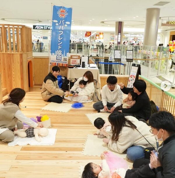 過去実績 2026年2月8日(日) 広島市 イオンモール広島祇園にて、パパも参加しやすい親子講座「ファミフレひろば」ベビーマッサージを開催しました