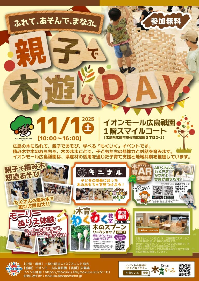 秋も開催!6月に大人気だった木育イベント「木の創造あそび場キニナル」をイオンモール広島祇園にて2日間 […] -