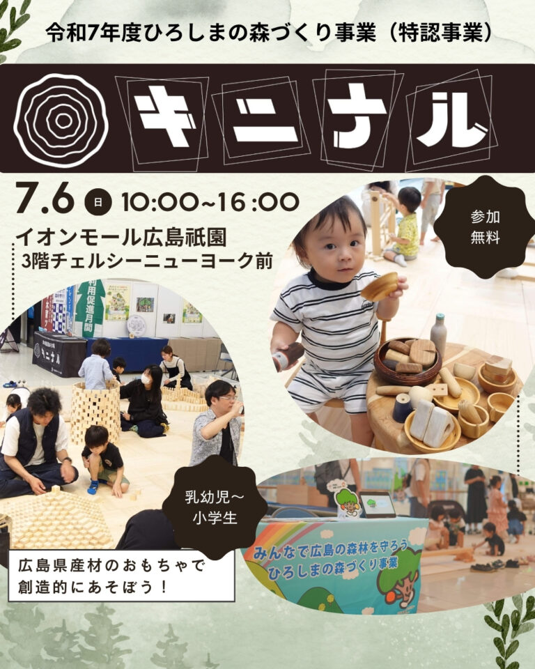 イオンモール広島祇園にて、木の創造あそび場「キニナル」を開催します! 日時:2025年7月6日(日) […] - イベント情報