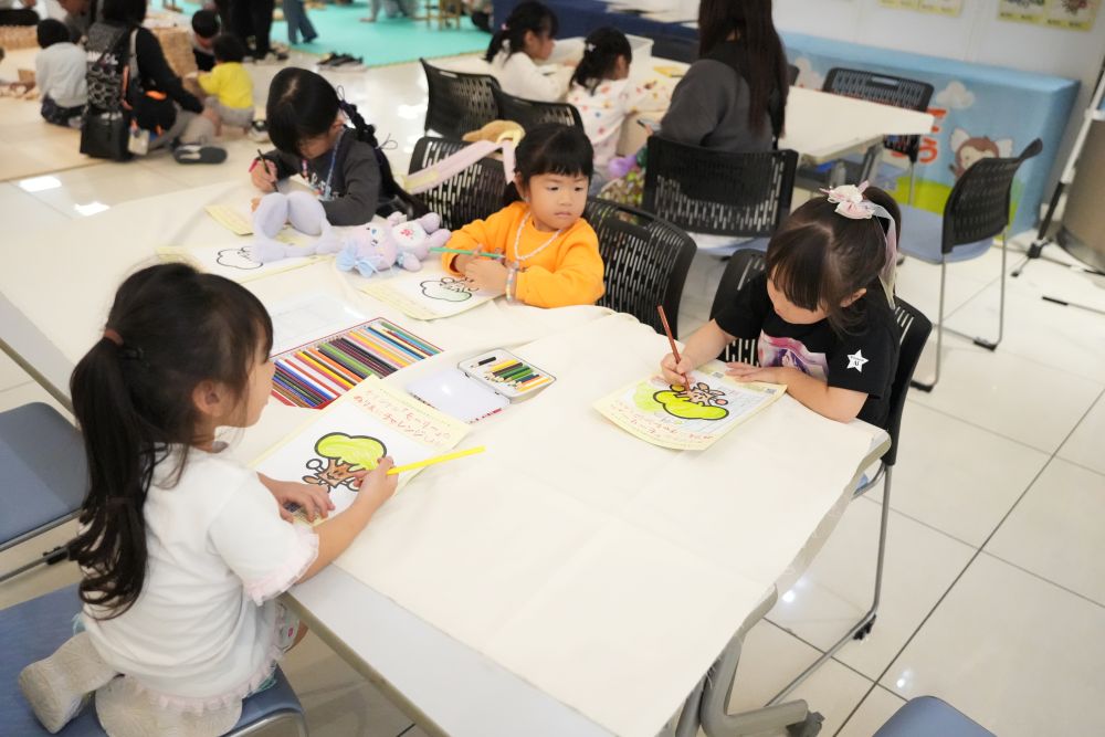 また、「モーリーのぬりえ」コーナーにも多くの子どもたちが参加し、思い思いの色でモーリーを描いてくれました。