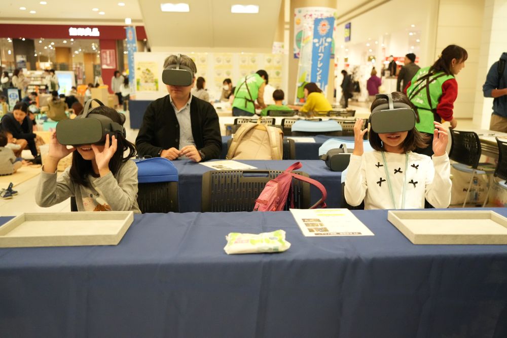 会場では、森や木について楽しく学べるVR体験コーナーも設置し、多くの方に体験をしていただきました。